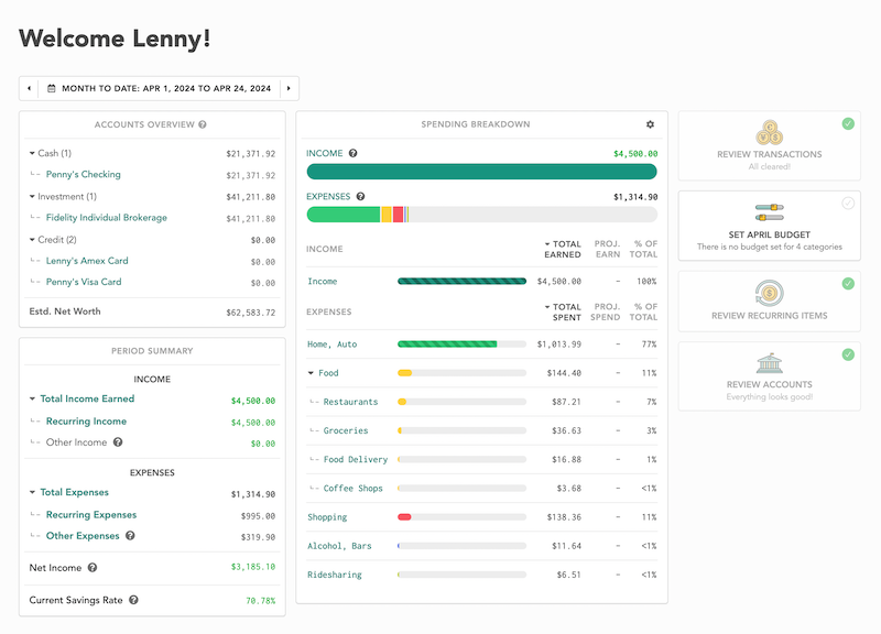 If you start managing your money as a couple and find that your family is growing, you can also add kids to this platform. Though you do have to upgrade your account, families appreciate the fact that there is a parent view and up to five authorized users can join the account.