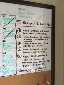 On Day 5, I took 20 minutes out of my morning before heading to work to write down 5 reasons I love her. I wrote them on the white board so she would find it later in the day.