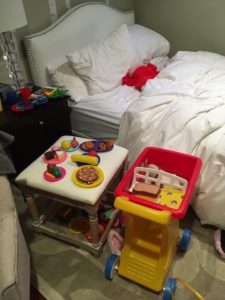 I went to work on cleaning up and getting the room back to normal. My goal was to make sure that Nicole's Monday morning started off on the right foot. With one less mess to clean, she could maybe, JUST maybe, have 5 minutes for herself on Day 4.