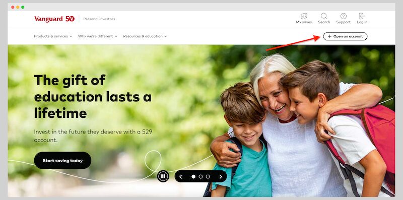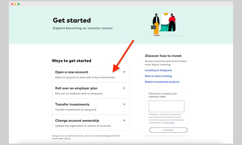 Go to the Vanguard site for personal investors and click Open an account.