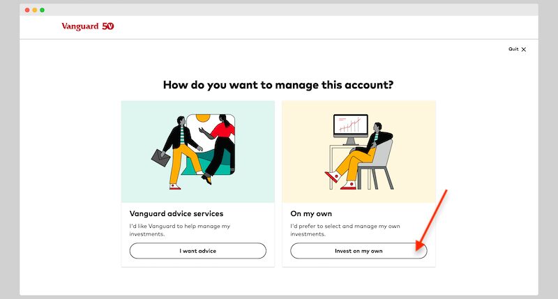 Choose “invest on my own” if you are planning to invest without a financial advisor from Vanguard.