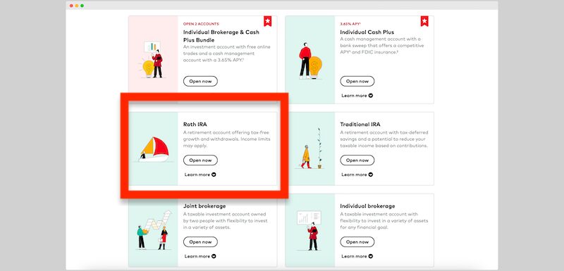 Click “open now” in the Roth IRA box.