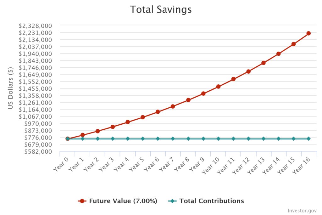 Through all of our investing efforts, we have amassed $750,000 in retirement investments (outside of our college savings). If we were to let this grow without contributing another dime, this could grow to $2.2 million by the time we reach 60 years old, using a 7% real rate of return (check it out using this compound interest calculator). That $2.2 million could provide us with over $100k per year in retirement using the 5% rule. That's more than we'll ever need. We have officially hit Coast FIRE! No more retirement investing needed for this family!
