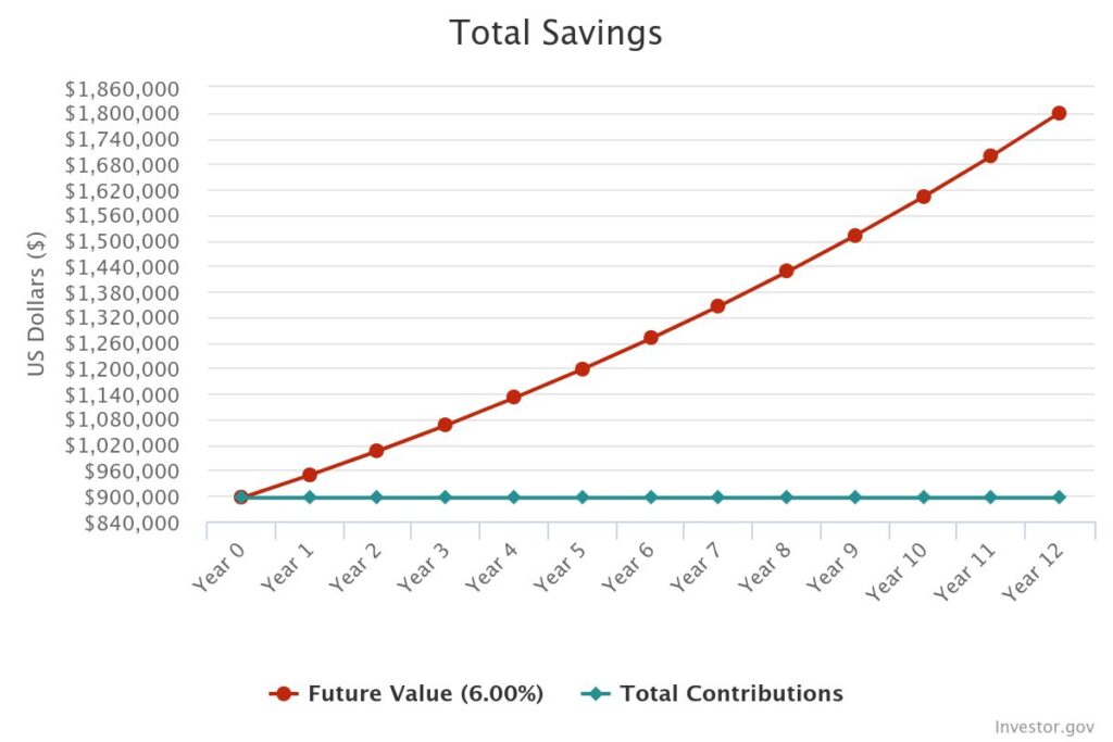 That $895,000 could grow to $1,800,000 by the time you’re 62 years old without any further contributions. Of course, you can choose to contribute to your accounts, but maybe you decrease your savings percentage so you can enjoy more of your money.