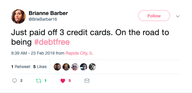 She recently paid off 3 credit cards after receiving her tax refund and now she has her eyes set on becoming debt free in 4 short years.