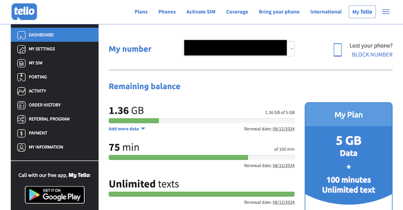 One of my favorite features of Tello's service is its online experience. When I visited Verizon's website, I was often confused about where to go and how to access my plan information.